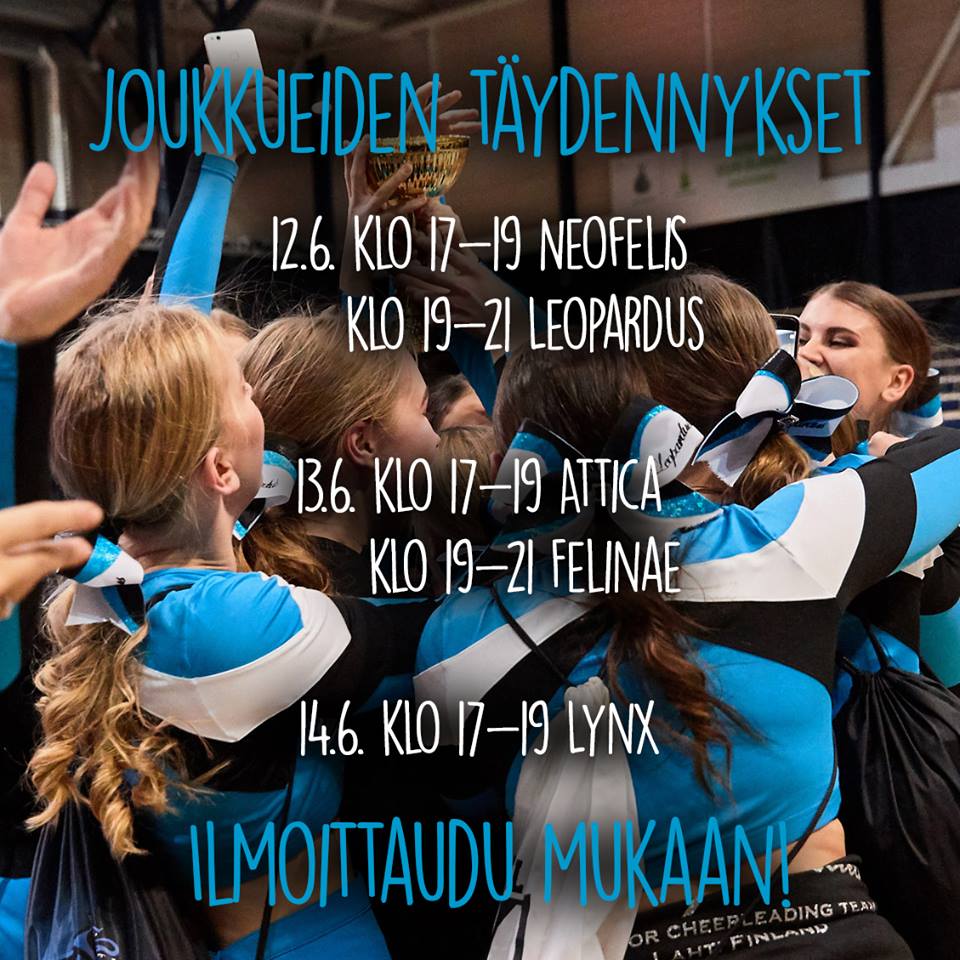 Etsimme tiimiimme cheerleadingin edustustason kokeneita ja osaavia valmentajia, cheertanssivalmentajia sekä akrobatia- ja fysiikkavalmentajaa.